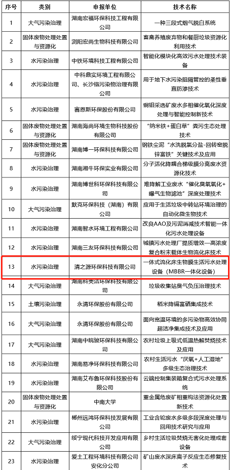 2021年湖南省環境保護實用技術名錄發布:清之源環保榜上有名!