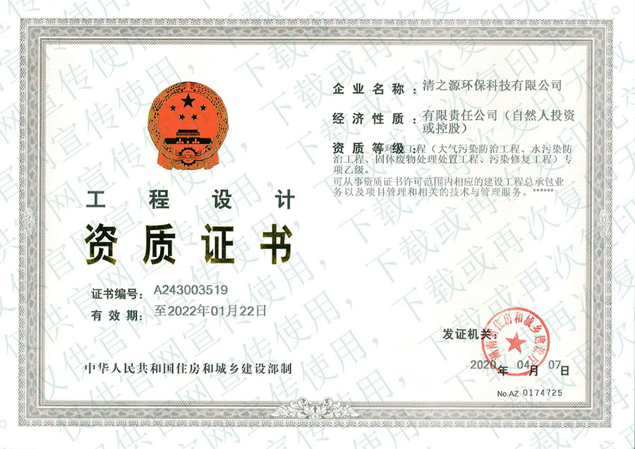 污染治理資質(zhì)證書—工業(yè)廢水處理二級